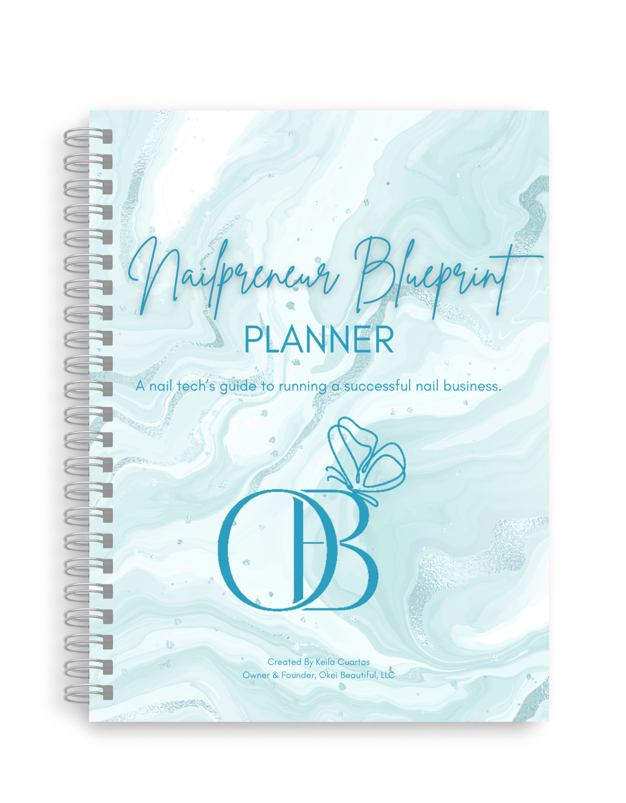 Plan your nail business growth with the Nailpreneur Blueprint Business Planner. Set monthly goals, build habits, track your income, and make your business grown in the right direction. Focus on one aspect of your business each week. You will also get the digital planner that will be available as an instant download. Can be used in apps like Goodnotes, Microsoft Onenote, and Notability. Reach out to info@okeibeautiful.com for questions!